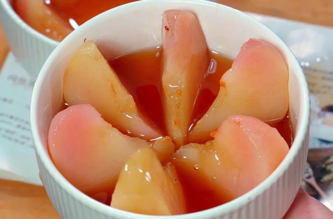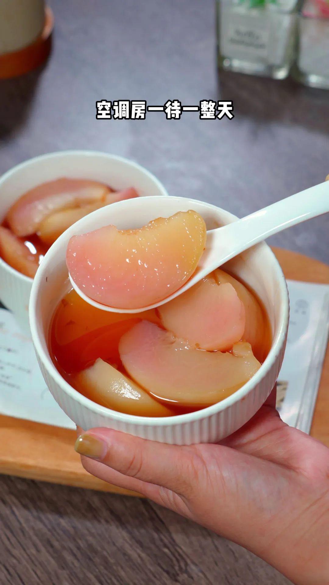 汤汁尤其鲜美,桃子也软糯入味,带着鲜甜果香味儿。