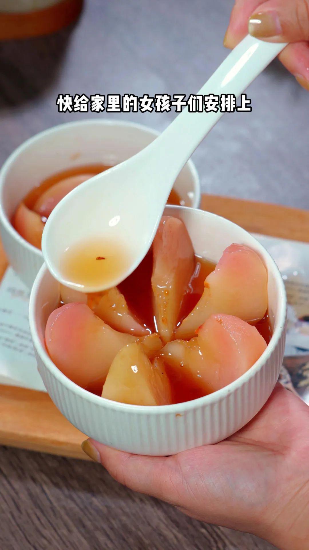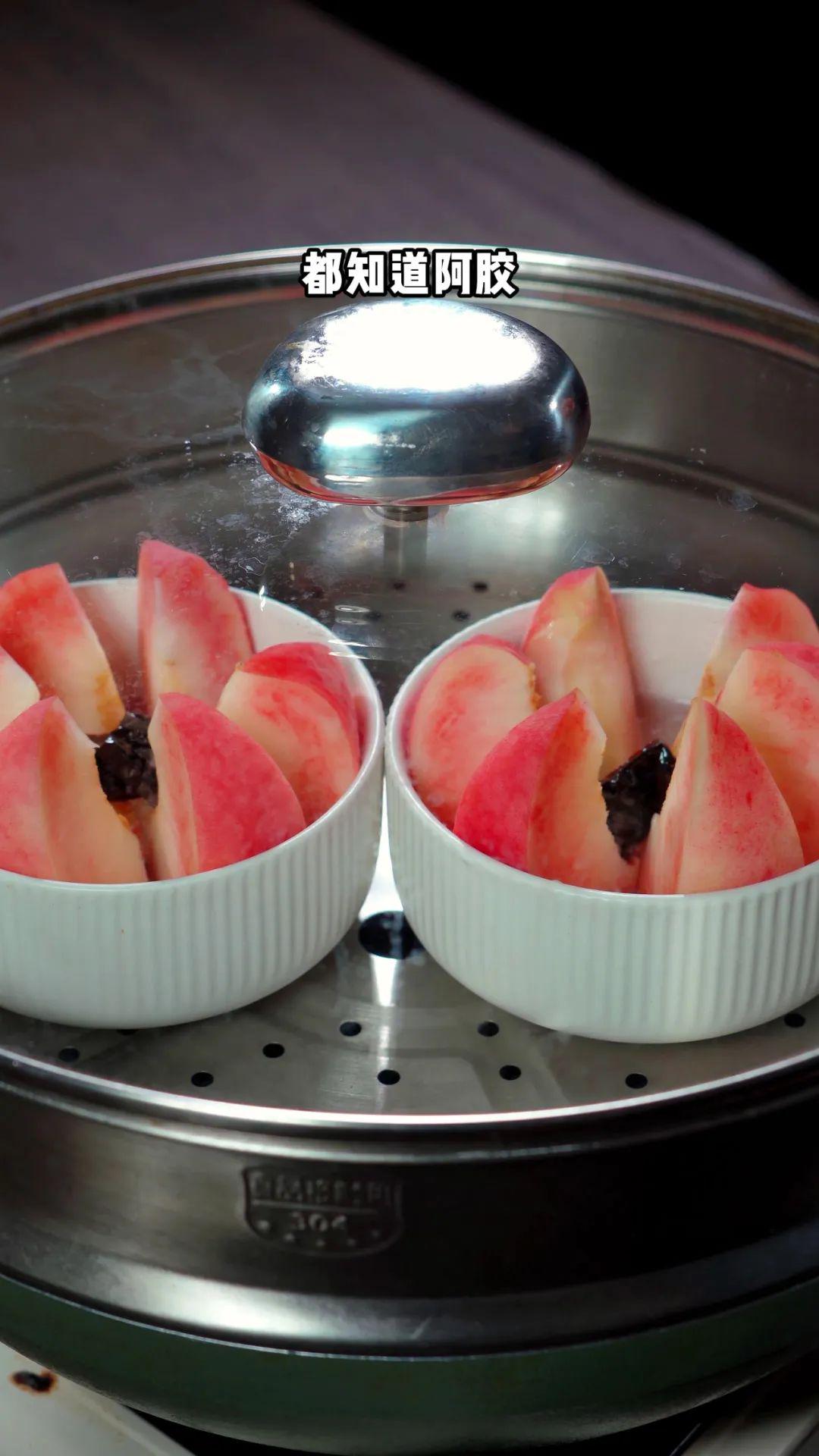 把阿胶和桃子这么一蒸啊豪极资本,看这颜色多诱人。