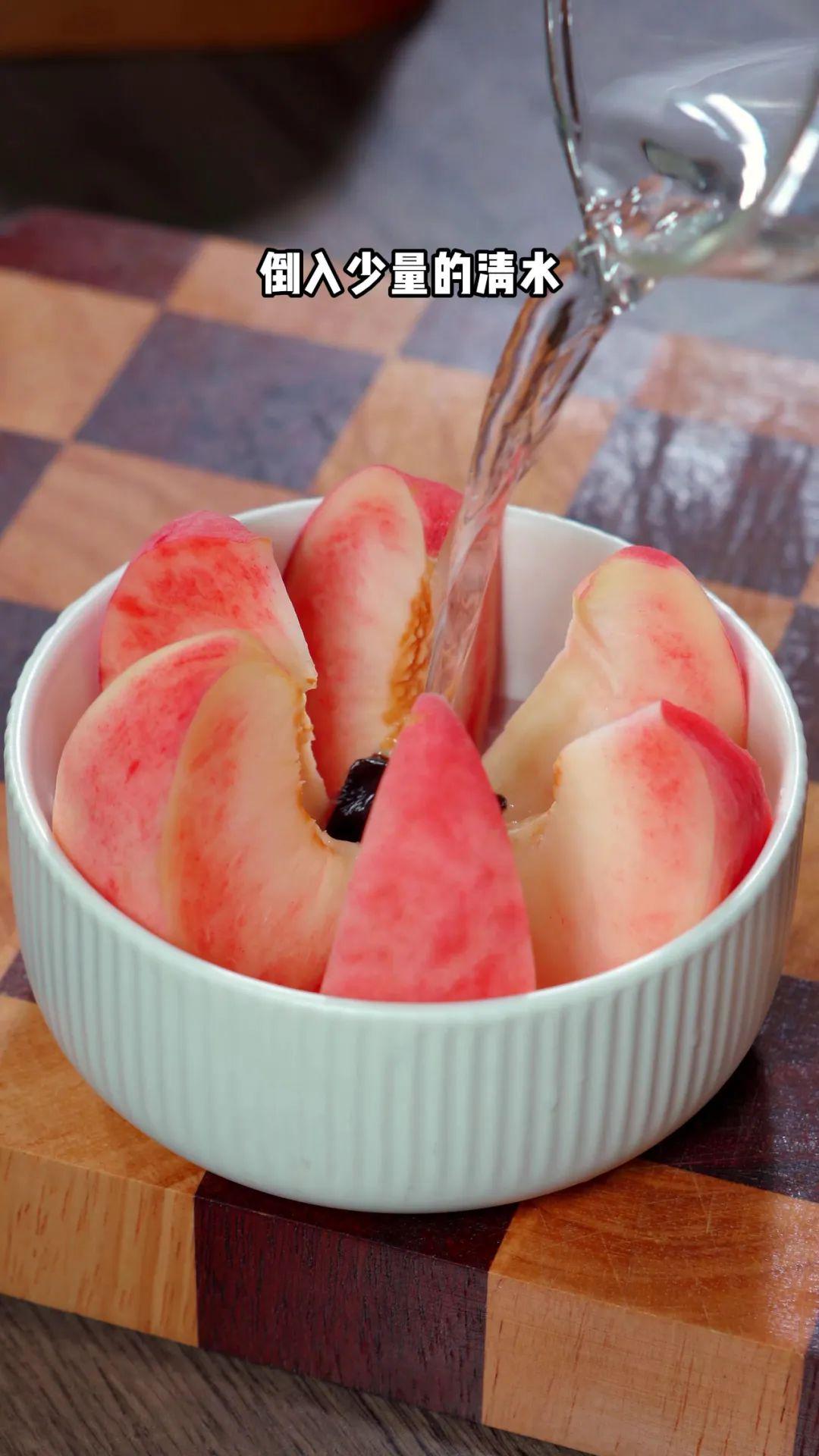 时间到了看一下 色香味俱全,桃子一蒸会更甜,很多果胶都会蒸出来,汁水尤其好喝