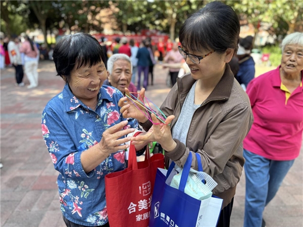 佟麟阁社区关注“银发族”,游园会融合健康诊疗与怀旧游戏,如翻花绳、投壶等等,让老人在轻松互动中重温往昔乐趣,享受健康关怀与社交温暖。