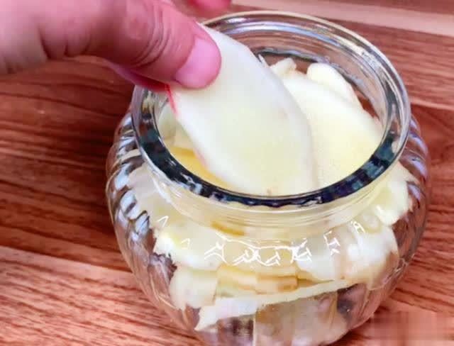 取一个无水无油的透明罐子,把姜片整齐放入,倒入米醋或者陈醋,米醋要深颜色的那种,不要用透明色,没过姜片,盖上盖子密封好。