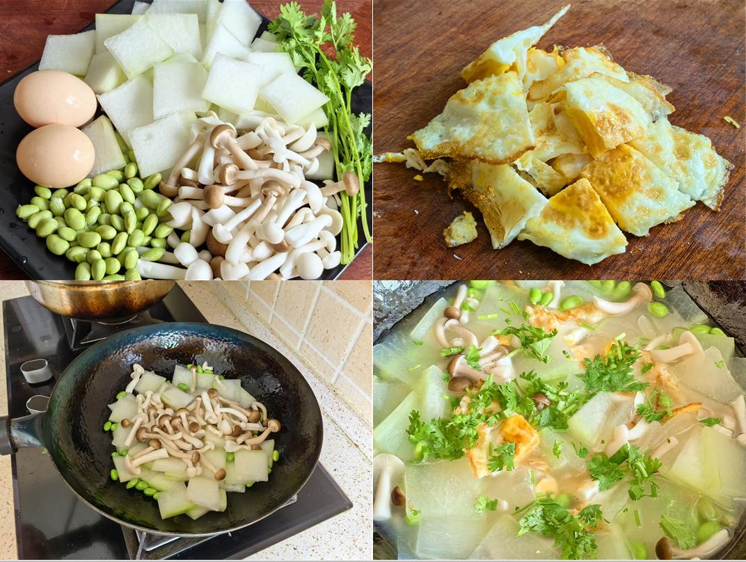 四、 冬瓜毛豆菌菇鸡蛋汤