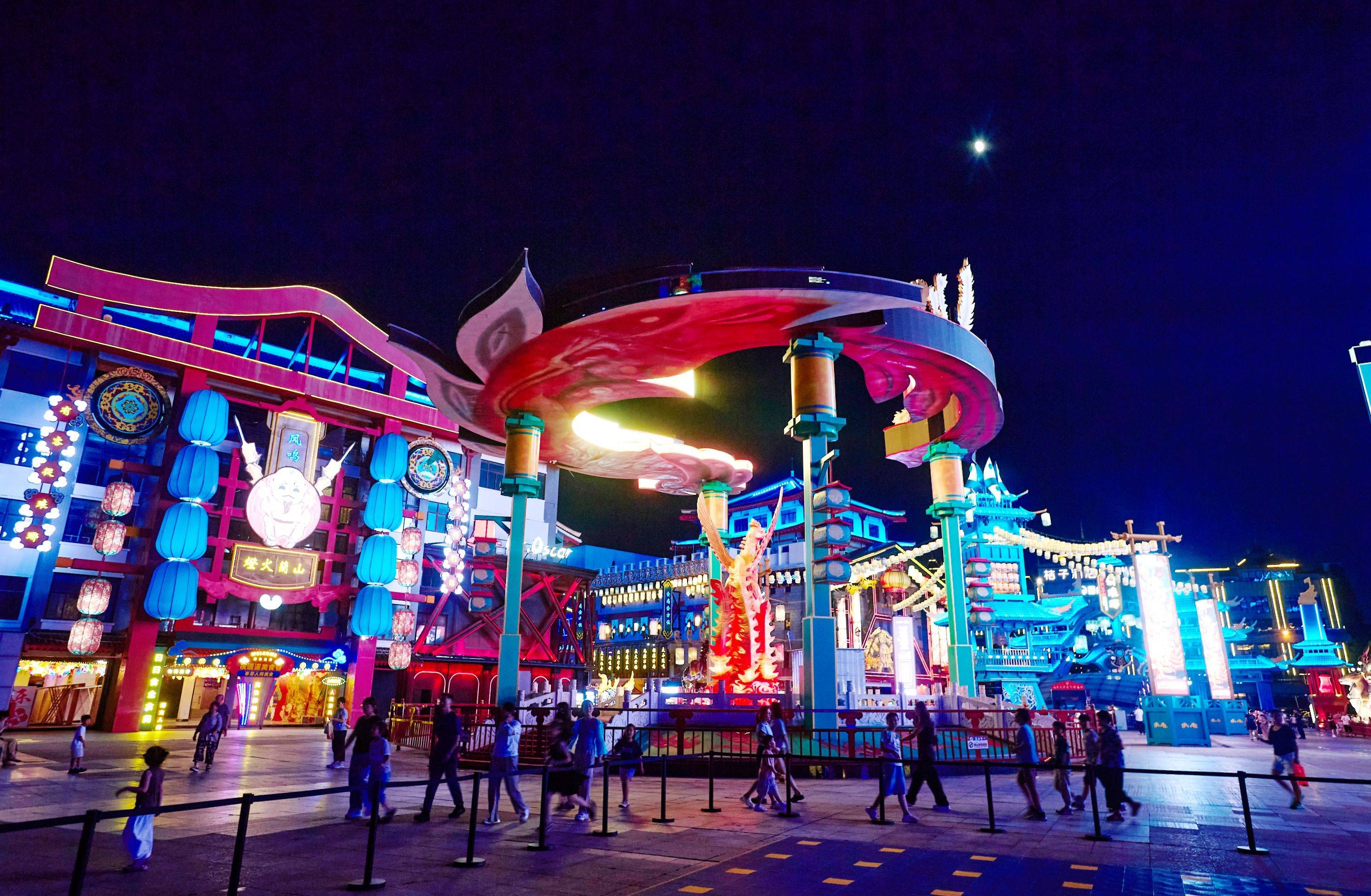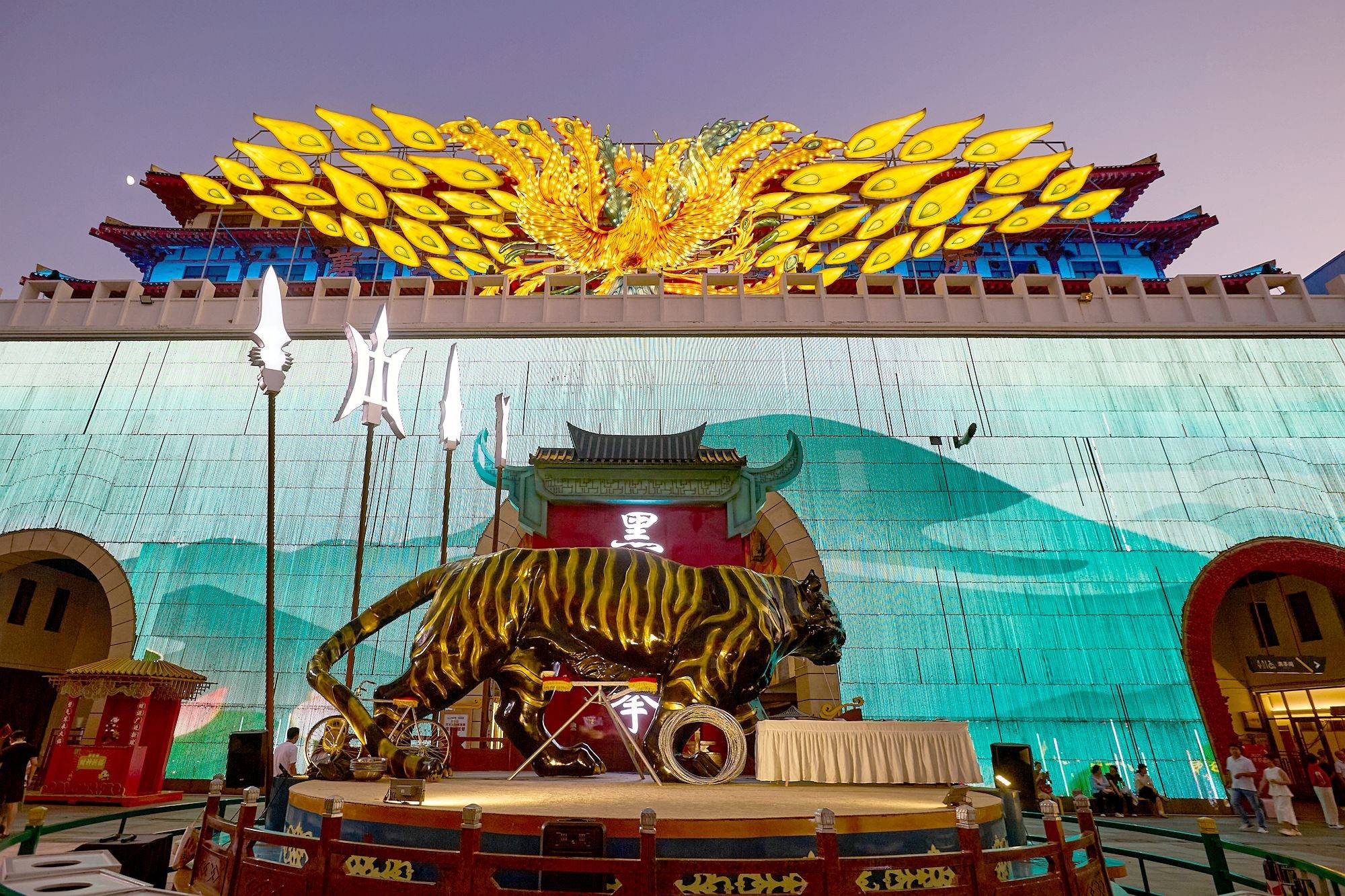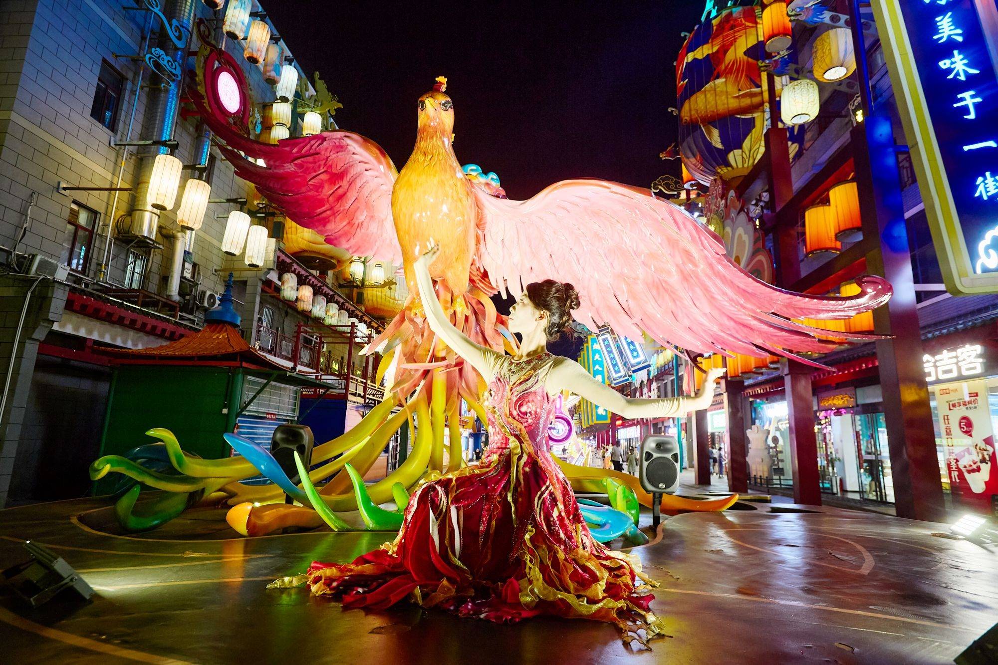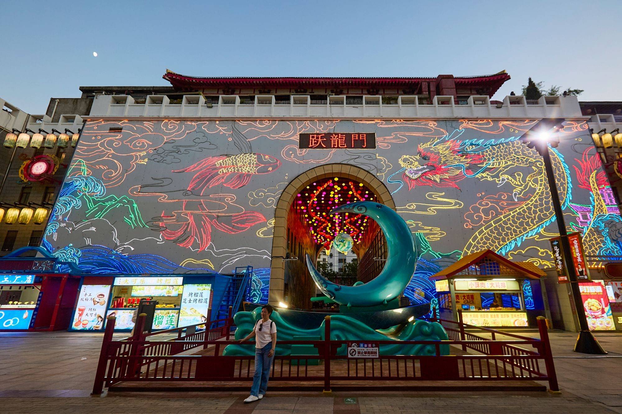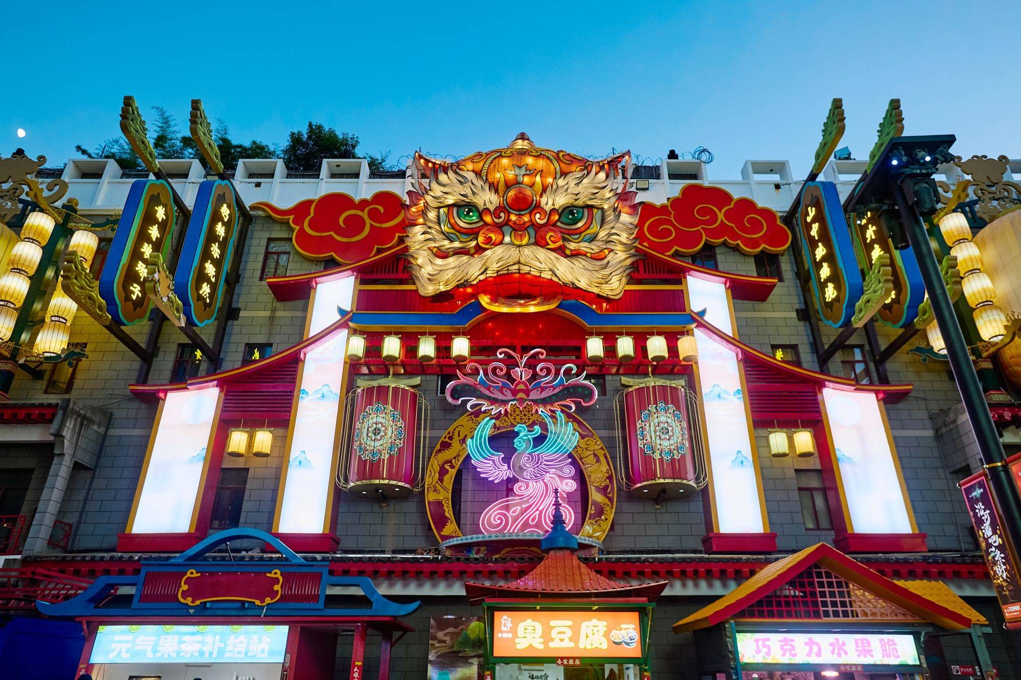 灯火次第亮起,白天看上去平平无奇的景观似乎被施了魔法金鼎配资,变得如梦似幻起来。矫健勇武的龙、华美雍容的凤、威风凛凛的狮子,简直像进入了国潮游戏的世界,五彩斑斓,魔幻氛围拉满。