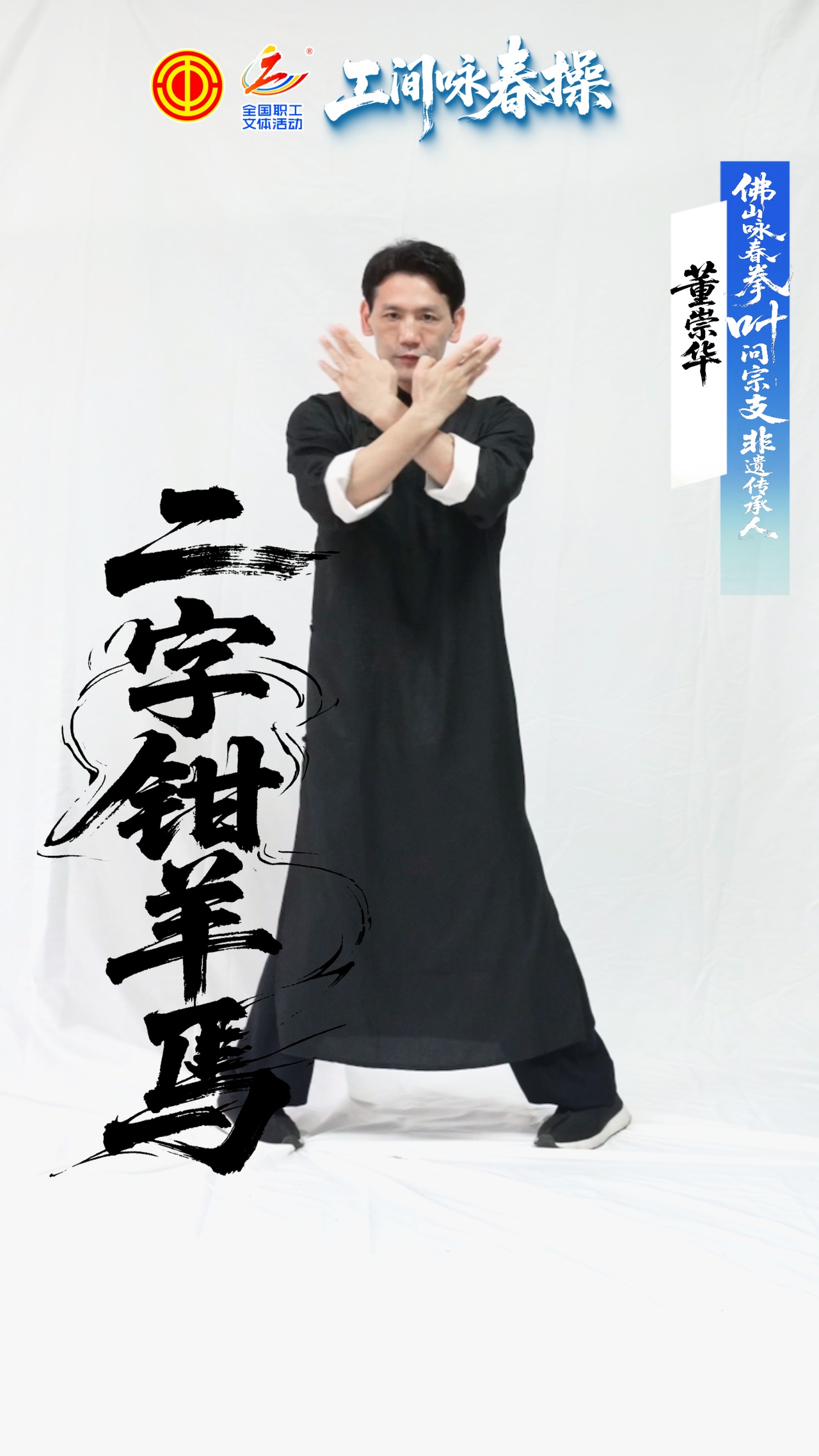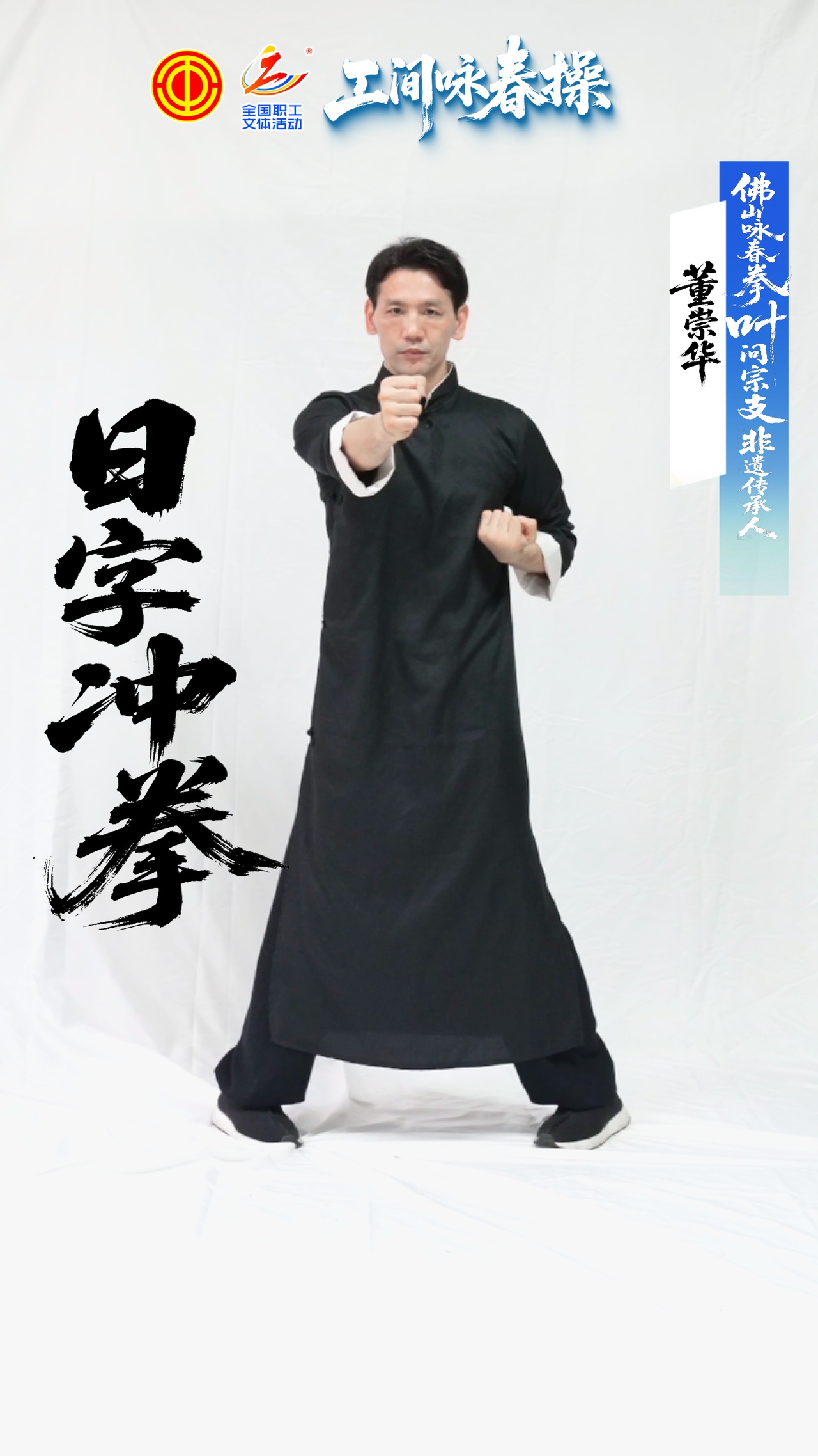为增加练习趣味性,全总特邀佛山咏春拳叶问宗支非遗传承人董崇华股策略,从传统咏春拳套路中精选八个简单易学的招式,编制成适合零基础成人练习的“工间咏春操”,并录制示范视频。这套咏春拳健身操特色鲜明,包含二字钳羊马、日字冲拳等经典招式,不受场地、器械限制,男女老少均可练习,在三分钟内即可完整练完,适合职工工间拉筋放松、舒展肩背。